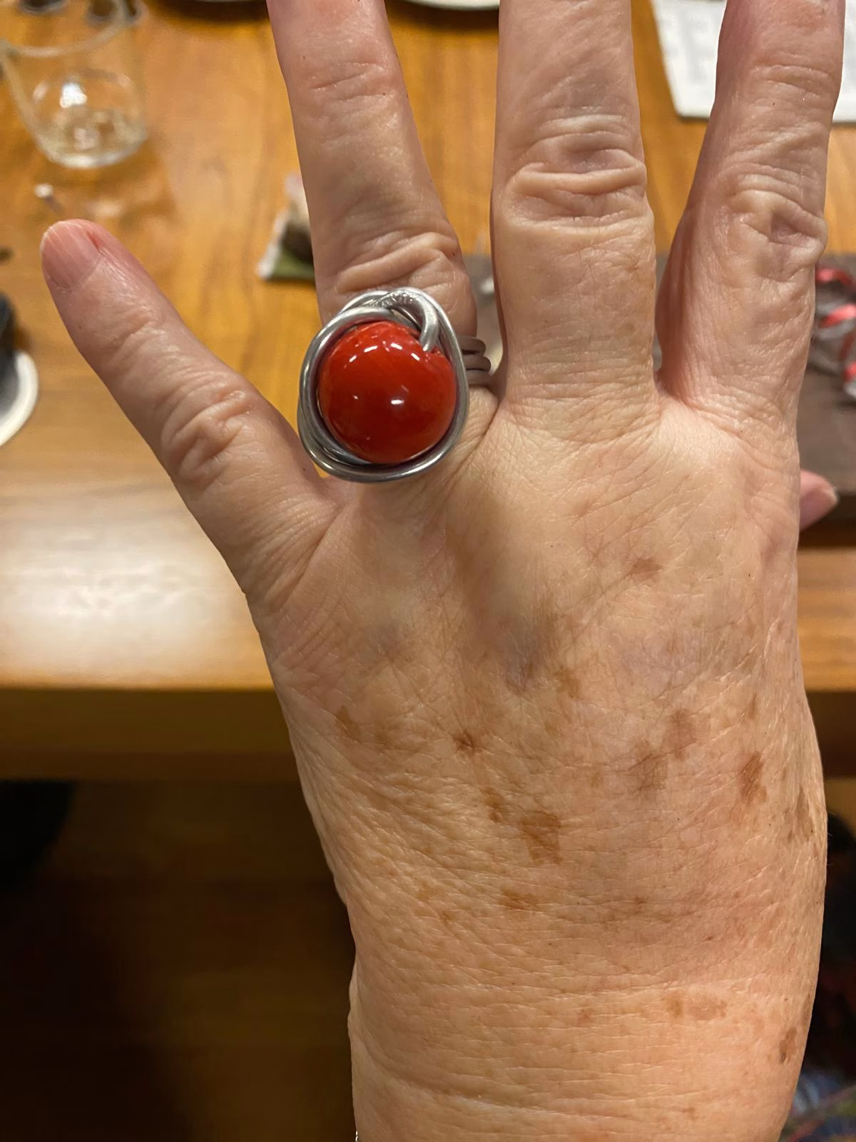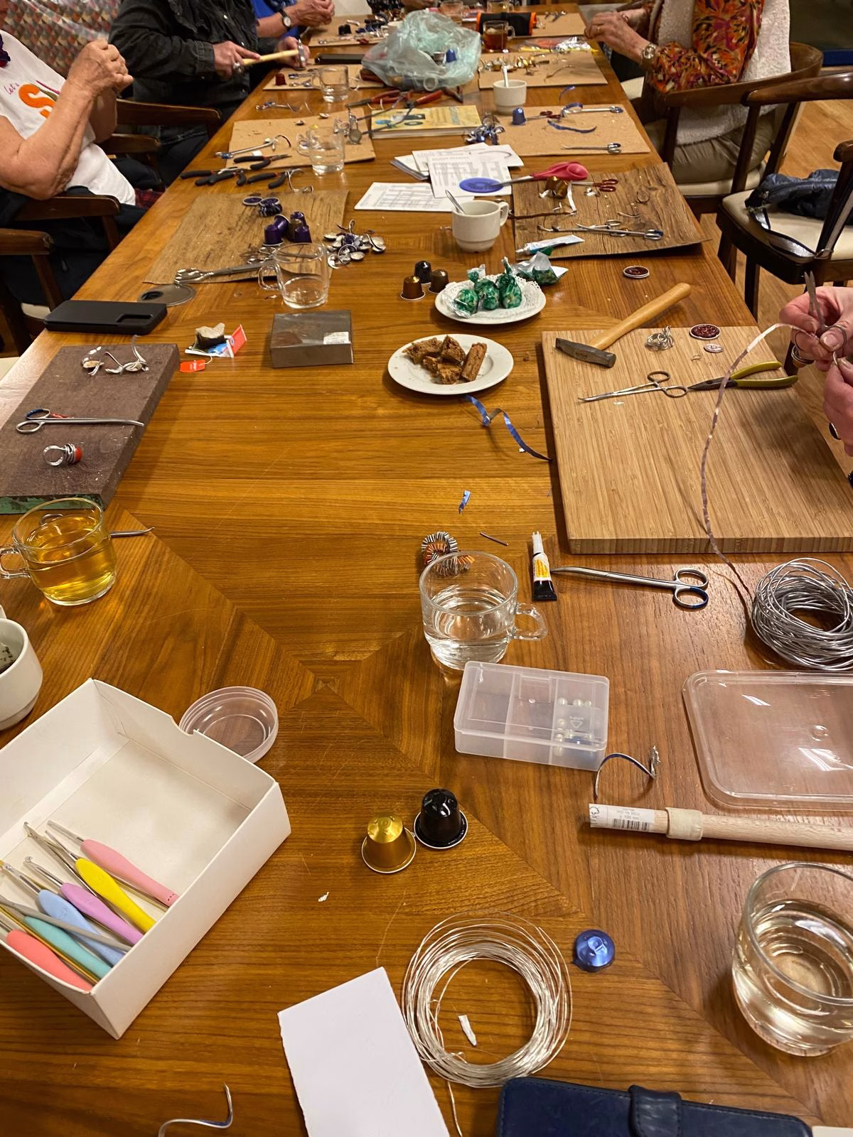 Het was een gezellige avond waar hard gewerkt werd, onder het genot van een kopje koffie met wat lekkers. Aan het eind van de avond gingen alle deelnemers met een mooi sieraad naar huis.